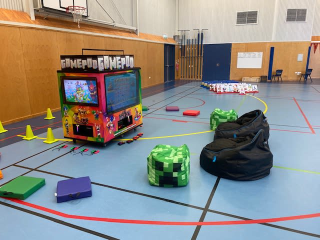 Game Pod has all the latest kid friendly games with a focus on physically active games like Sports and motion controlled controllers. There is no disk changing, no glitches like arcade machines: it just works! We have literally had kids boo us when taking the pod away which we will take as a compliment!