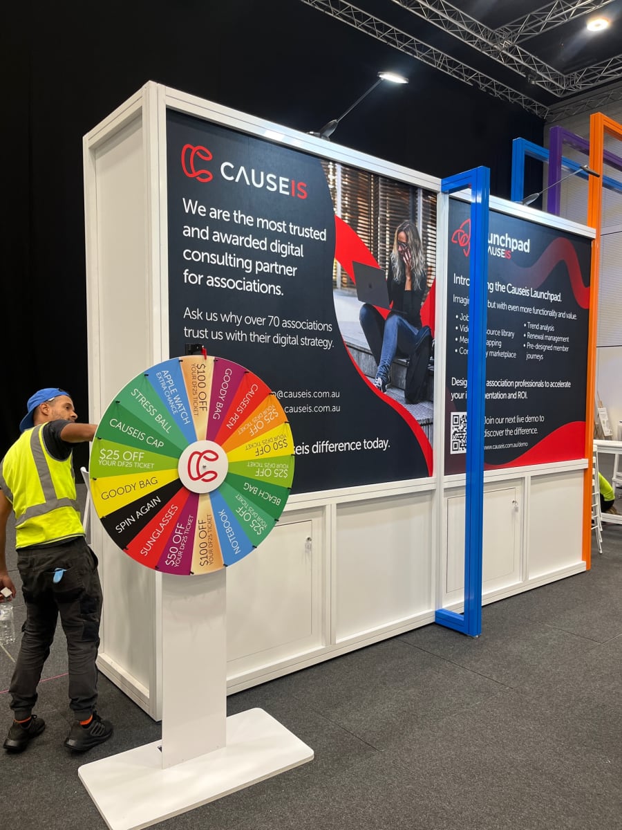 Our custom branded prize wheels are a very popular attraction at trade shows, store openings, fundraisers and exhibition booths. We offer 100% in house bespoke branding with the latest large format printers and in house build staff. We can suit our prize wheels to just about any concept or activation theme.