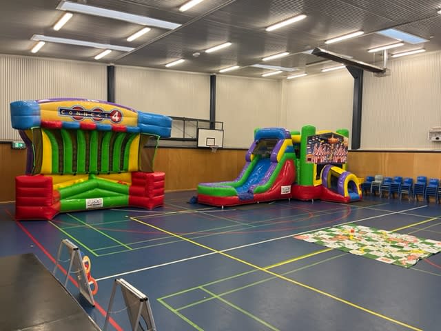 Our custom made Epic Combo has bright and shiny colours that stand out from a mile away and suit virtually any occasion! This combo features a big bounce area with built in air circulators, inflated basketball ring in the bounce area, climb and slide.