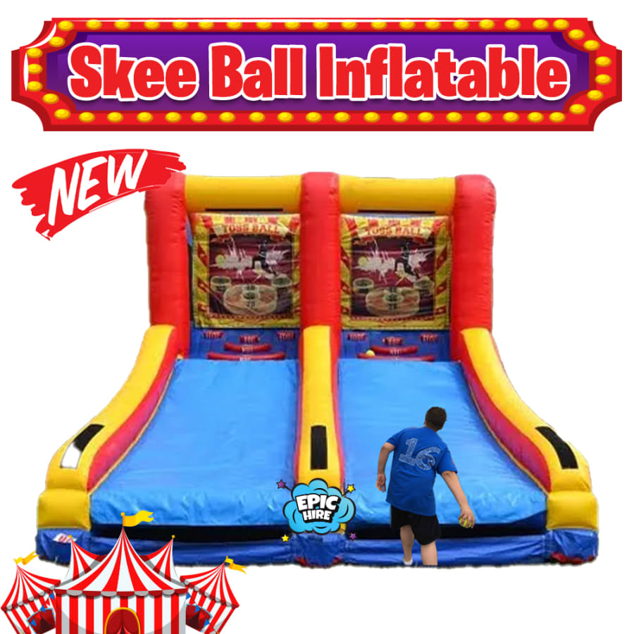 Our giant skee ball inflatable is a sight to see. At 5m long and 3m wide it stands out in any setting. Our inflatable features two lanes for double play! Balls roll back down to the player for a speedy competition of this novelty sized classic game.