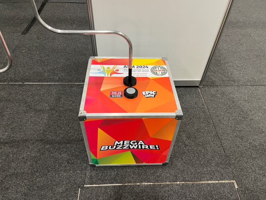 Our new Buzz Wire is a first in Australia at over 4.3m in length this makes it (far as we can see) the largest Buzz Wire in, wait for it, the world! Featuring bespoke branding options, electronic scoring and adjustable difficulty settings this game is sure to be a great draw card to any event, trade show, conference or expo.