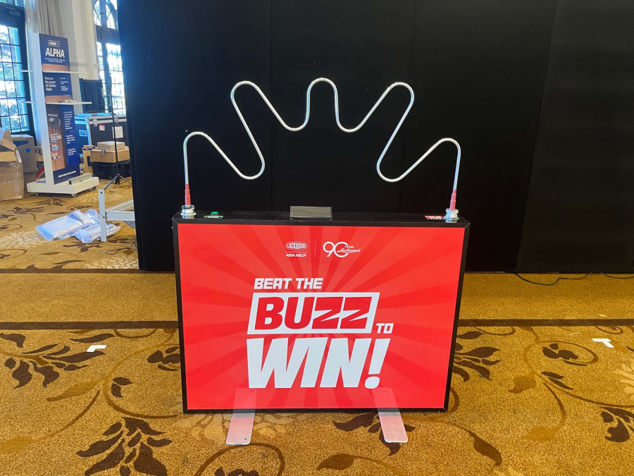 Looking to gain more visitors and attention to your upcoming activation? Our Buzz Wire is always a huge hit for all ages and occasions. This game really does attract more clients to your booth with its unique and well finished design. It keeps theme there with its challenging game play!