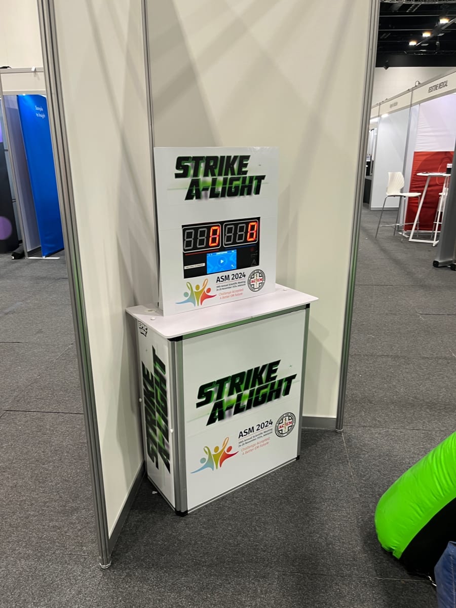 Our Strike A Light game is a huge hit with just about every age player and every type of ossacion! Strike a light can be a two or four player battle royale where each person or team has to hit as many of their coloured lights within the time frame (adjustable but generally 45 second games). The scores are streamed live to the LED display with sound effects and lights. This game is a true test of players reaction speeds for hand eye coordination.