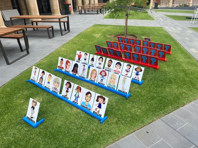 Our custom made Giant Guess Who style game is a site to see! A modern take on an old classic game that is loads of fun for all ages. Great for an ad on to any hire or stand alone game to promote problem solving and good times!
