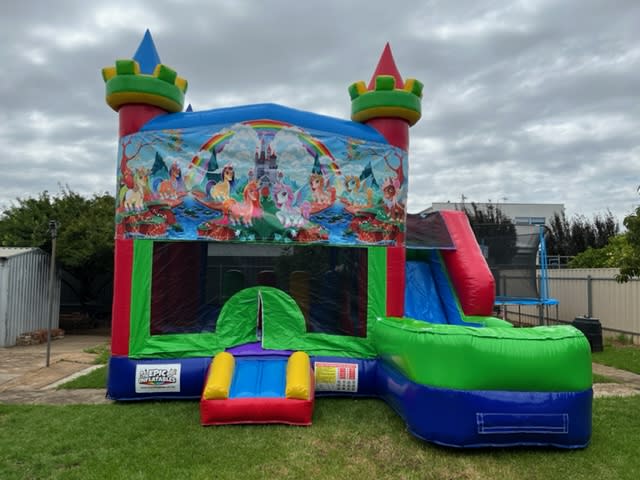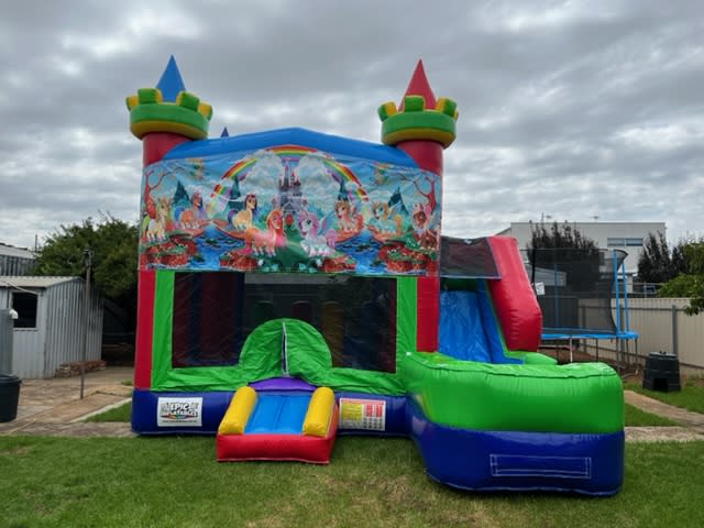This bright and bubbly combo castle is one of the best bouncy castles you will find in Adelaide! A great all rounder with loads of features whilst being a size to fit most backyards!