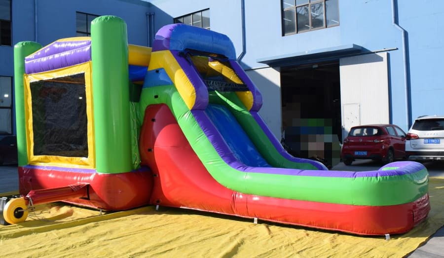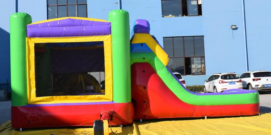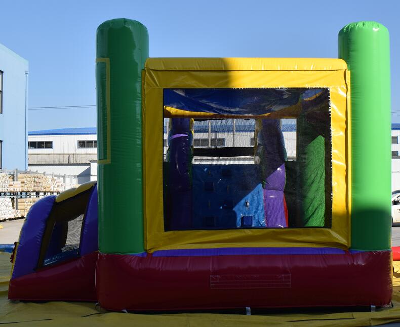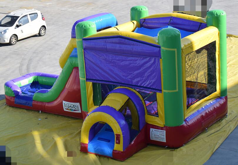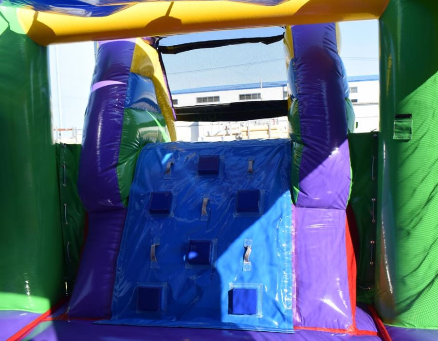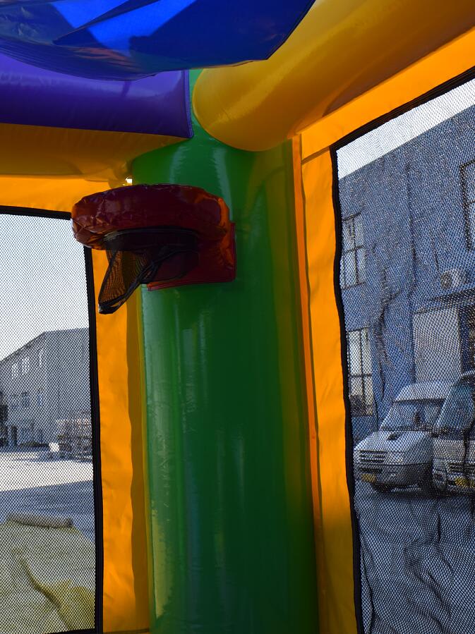 Our custom made Epic Combo has bright and shiny colours that stand out from a mile away and suit virtually any occasion! This combo features a big bounce area with built in air circulators, inflated basketball ring in the bounce area, climb and slide that can be used wet or dry for all weather.