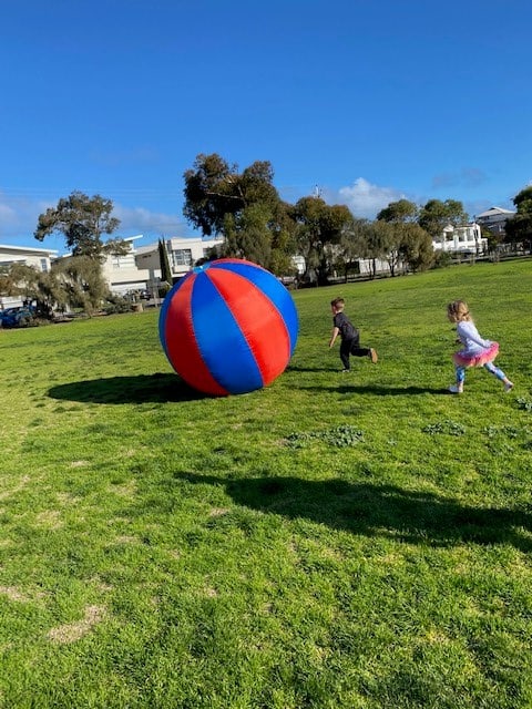 A range of games can be played with the ball involving teams and cooperation. The ball is a great ad on to events to keep a large amount of kids amused whilst waiting for their turn on other inflatables.