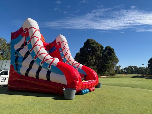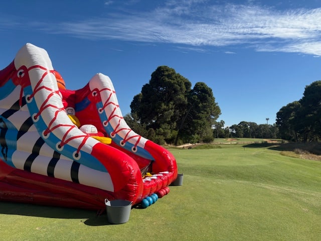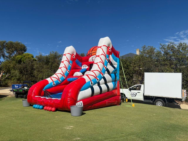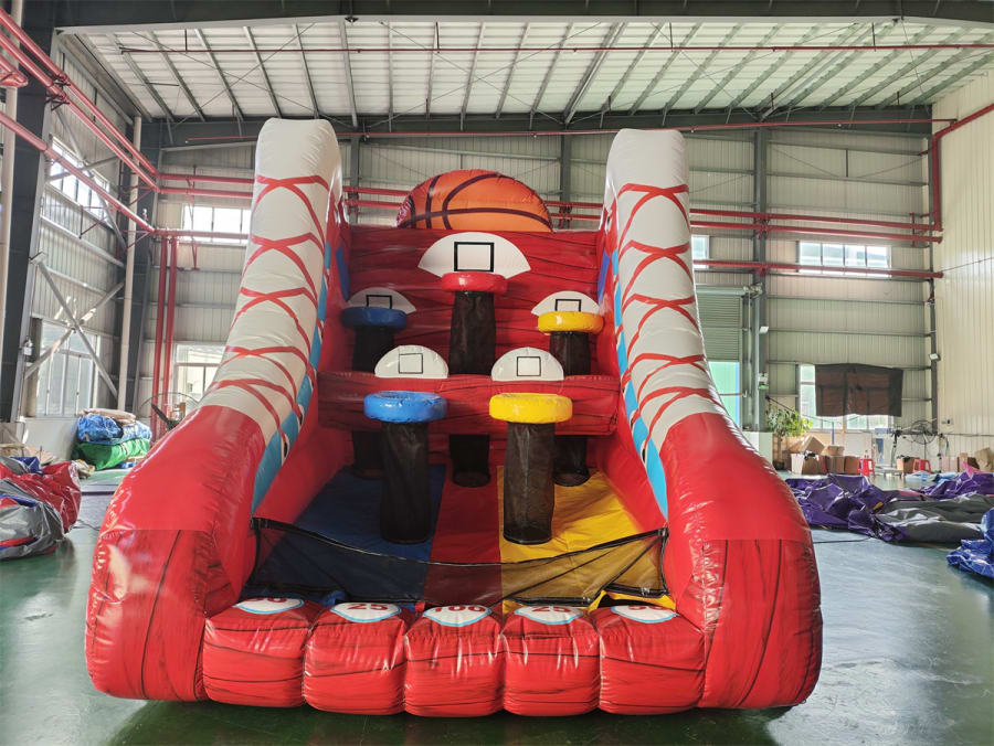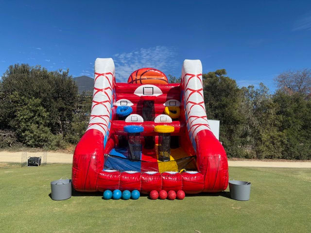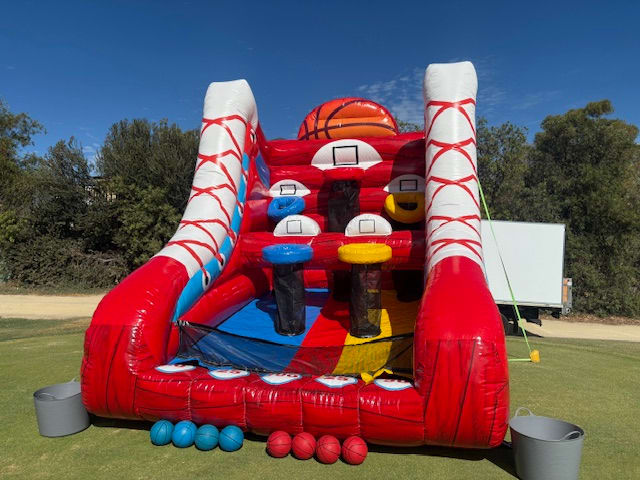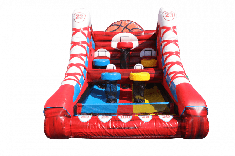 Our new custom made basketball inflatable is great fun for virtually all ages. This game has 5 hoopz with scores for each basket. Players compete to get as many points as possible within the game time. Simple but extremely fun.